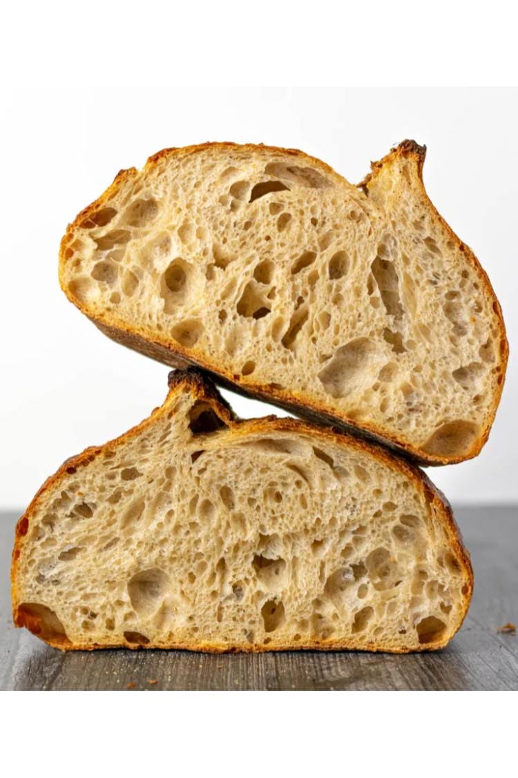 Freshly baked sourdough is a delicious side for ham; you can also use it for your leftovers to make sandwiches.