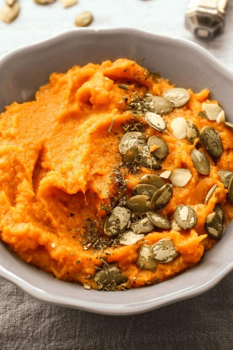 These easy mashed sweet potatoes are made with coconut milk and bacon bites, making a creamy and extra delicious side to serve with ham.