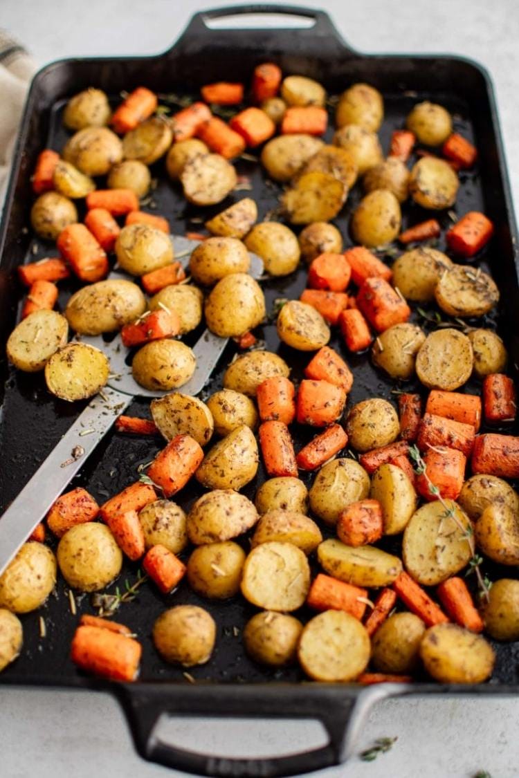 This one-pan Roasted Potatoes and Carrots recipe is the perfect side dish to complement ham. Quick and easy to prepare with just a few simple ingredients, it delivers a flavorful result with golden, creamy potatoes and tender, sweet carrots.