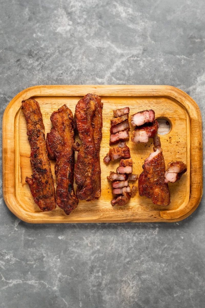 Be sure to follow along carefully so you get all the steps right and your pork belly strips come out perfect every time.