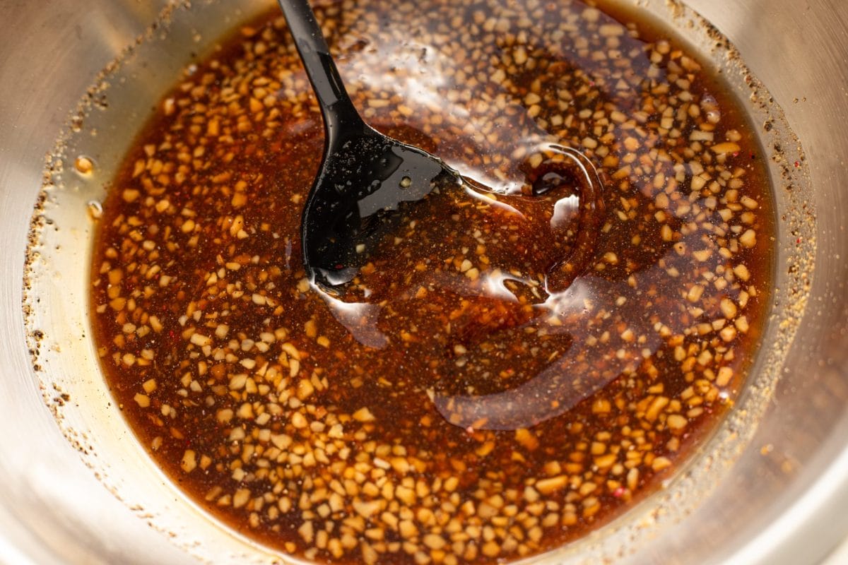Whisk together 3 tablespoons soy sauce, 2 tablespoons fish sauce, 3 tablespoons brown sugar, 2 tablespoons honey, 1 tablespoon rice vinegar, 4 cloves minced garlic, 1 tablespoon grated ginger, 1 teaspoon five-spice powder, and ½ teaspoon black pepper. Make sure the sugar dissolves completely.