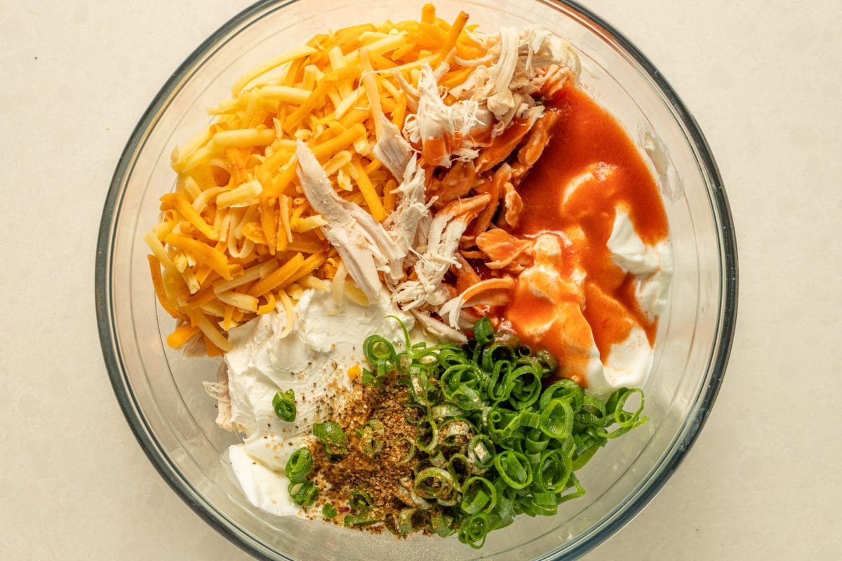 - In a large bowl, beat softened cream cheese until smooth, then stir in buffalo sauce, ranch dressing, garlic powder, onion powder, and smoked paprika.