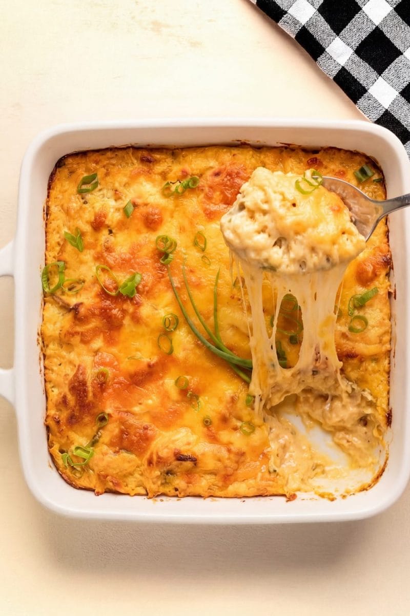 Replace cream cheese with dairy-free cream cheese for a lactose-free option. Brands like Violife or Kite Hill melt similarly and keep the creamy base intact. Pair with a dairy-free cheddar shred and you have a casserole that works well for guests with dairy sensitivities without sacrificing the richness.