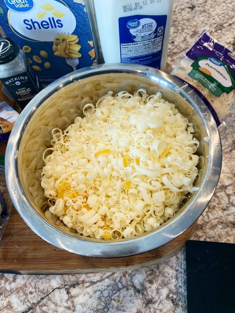 - Sharp Cheddar Cheese (Freshly Shredded) — Always shred your own. Pre-shredded cheddar is coated in anti-clumping starch that makes sauces grainy. A block of sharp cheddar through a box grater takes three extra minutes and is absolutely worth it.