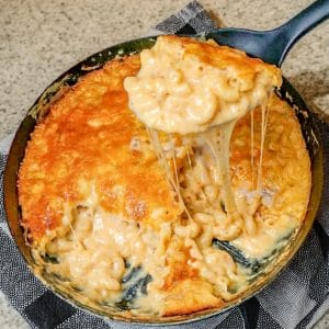 Let the mac and cheese cool for about 20 minutes before covering. Store in an airtight container and refrigerate for up to 4 days. For longer storage, freeze individual portions for up to 2 months — thaw overnight in the fridge before reheating. To reheat, add a splash of milk and warm in a 350°F oven covered with foil for 15–20 minutes, or microwave in 90-second intervals, stirring between each, until heated through.