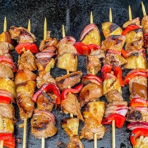 - Grill kabobs for 10-12 minutes, turning every 3 minutes for even charring.
