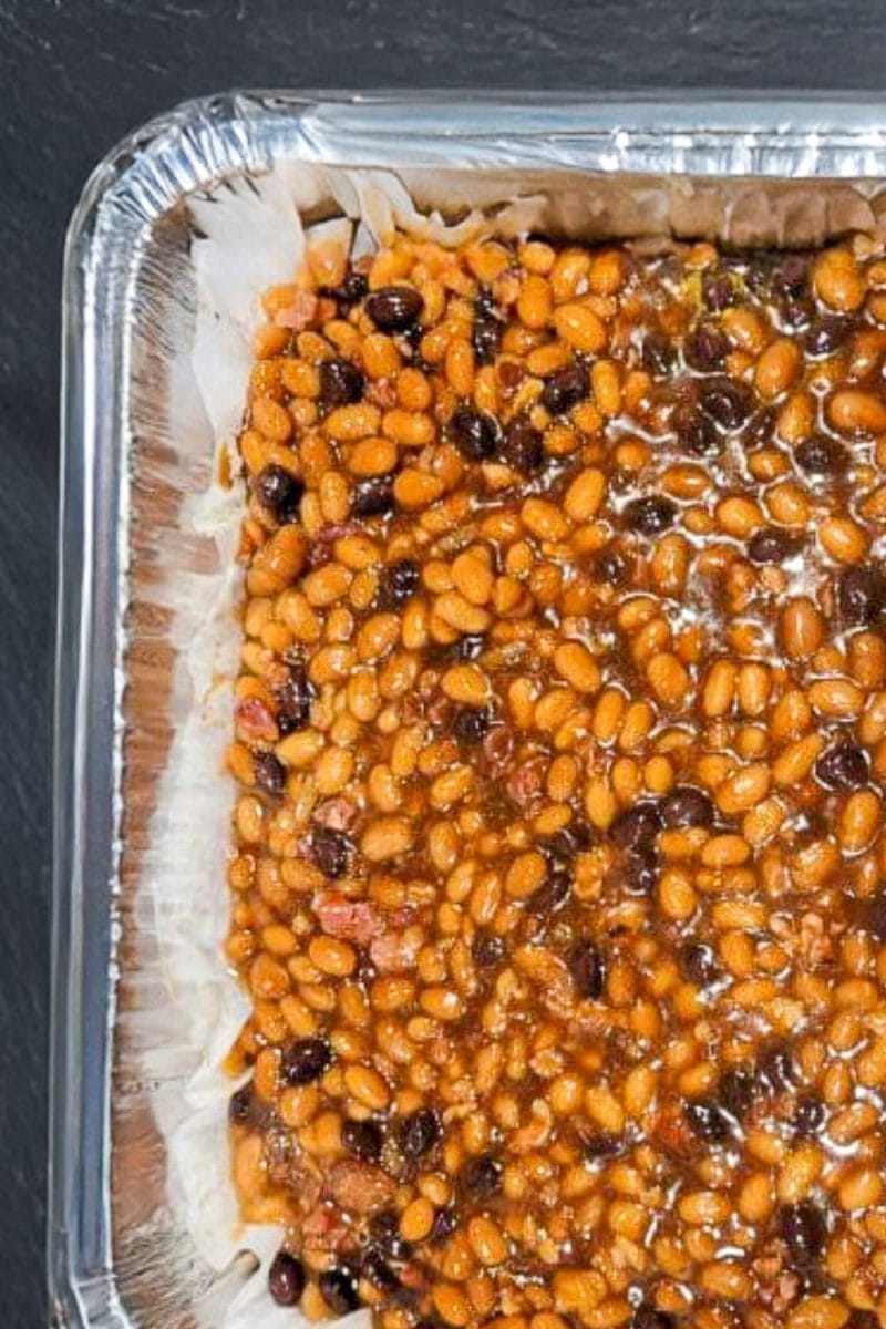 As the beans are only smoking for a short amount of time, it’s not necessary to cover them. Uncovering will allow the extra liquid to evaporate, thickening up the sauce, and allowing the glorious smoke flavors time to infuse through the dish.