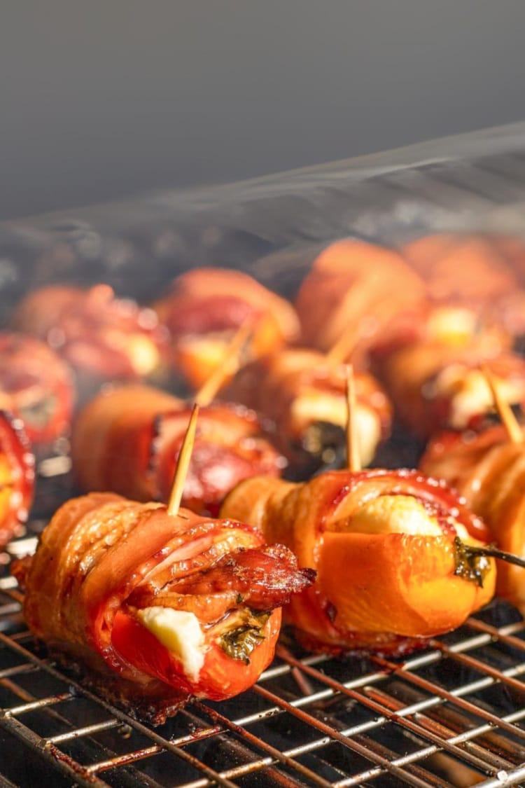Who can resist cream cheese stuffed into juicy peppers and wrapped in crispy bacon? The smoker does a great job of adding a smoky flavor while ensuring the bacon is perfectly crisp.