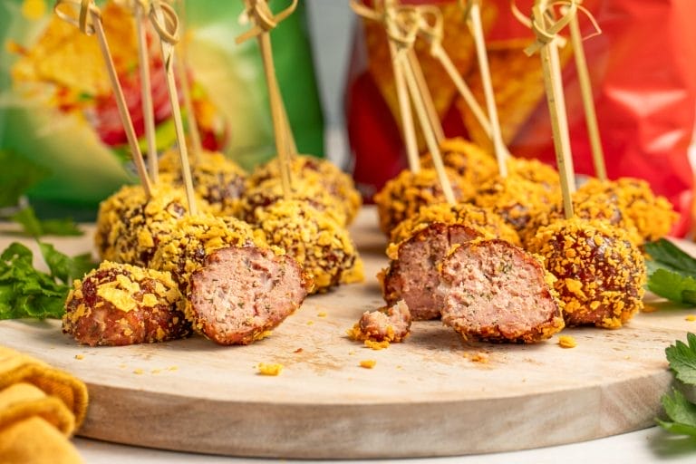 Crunchy, cheesy meatballs coated in crushed Doritos — fun and bold.