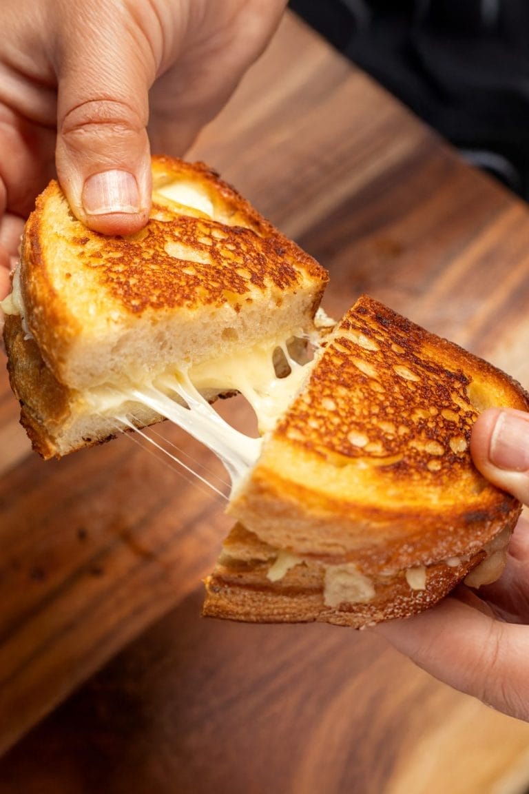 Smoky grilled cheese with a perfectly crisp crust and gooey interior.