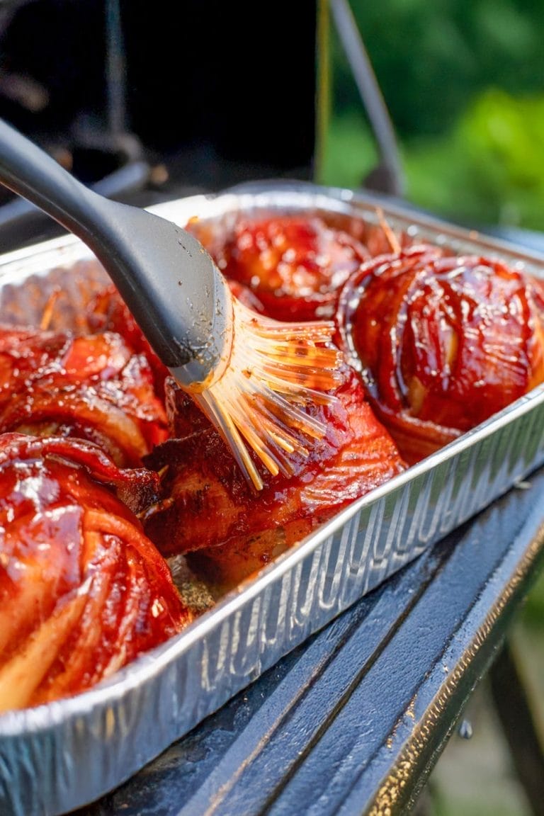 Bacon-wrapped onions stuffed with meat and cheese, smoked until melty and tender.